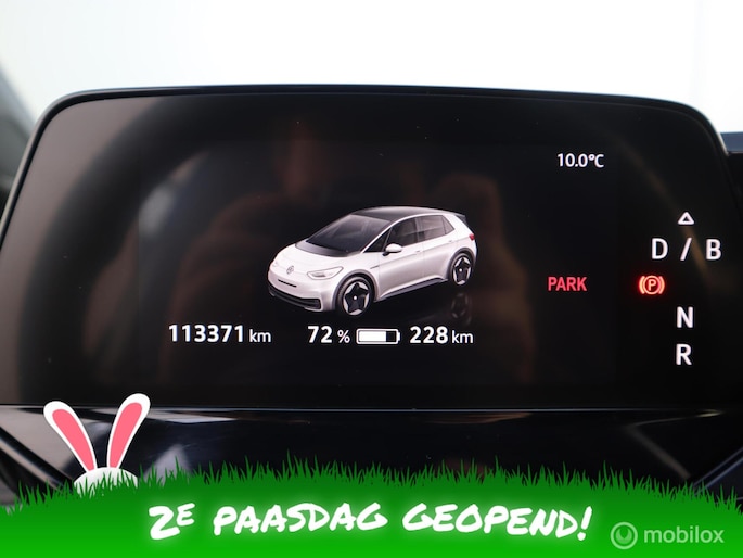 Voor je gezin, je werk of gewoon lekker voor jezelf: een onvervalste Volkswagen. U wordt actief onderdeel van de energietransitie met de elektromotor. Het zijn de degelijkheid van de constructie en de doordachtheid van het ontwerp die ervoor zorgen dat een Volkswagen jarenlang begeerlijk blijft. Zoals deze ID.3, bijvoorbeeld. Winterse omstandigheden? Geniet dan van het comfort van de stoelverwarming! De slimme koplampen gebruiken de allernieuwste matrix LED-verlichting. Altijd maximaal zicht, nooit verblinding bij de tegenligger. Natuurlijk behoren 19 inch lichtmetalen velgen, donker getint glas achter, in delen neerklapbare achterbank, LED-achterlichten en snelheidsafhankelijke stuurbekrachtiging ook tot de uitrusting van deze complete auto.