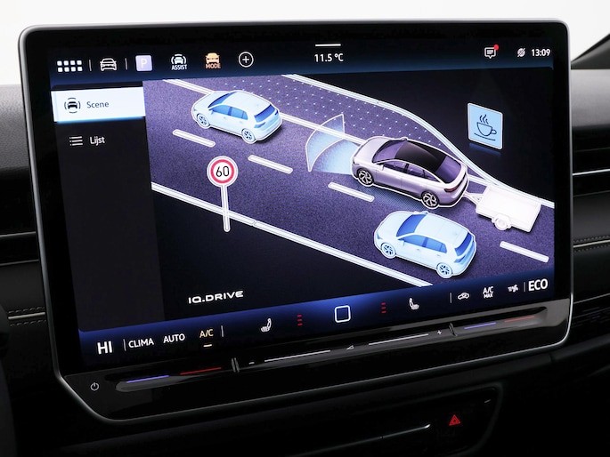 In de Volkswagen ID.7 heeft uw veiligheid en die van uw omgeving prioriteit. U hoeft onderweg uw hoofd nooit te draaien of uw blik te verplaatsen om dashboard-info af te lezen. De head-up display projecteert alles op de voorruit. U kunt rijden als een jachtpiloot. U rijdt ook veiliger omdat deze auto voor u de verkeersborden langs de weg kan lezen. De belangrijkste borden worden op uw instrumentarium geprojecteerd, zodat u ze niet kunt missen. Onbedoeld buiten de rijstrook raken wordt voorkomen door het Lane-keeping systeem. Dankzij veiligheidsvoorzieningen als dodehoekdetectie, vermoeidheidsherkenning, frontale botsbescherming en bandenspanningcontrolesysteem, bent u steeds veilig onderweg.