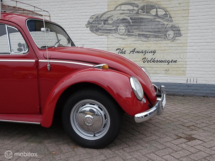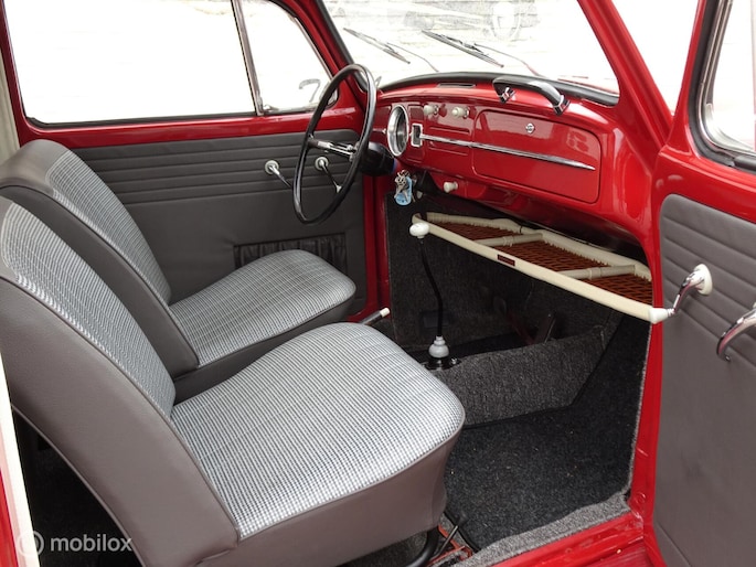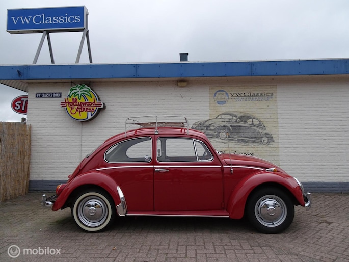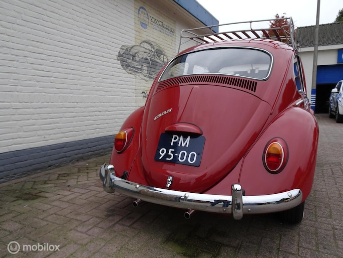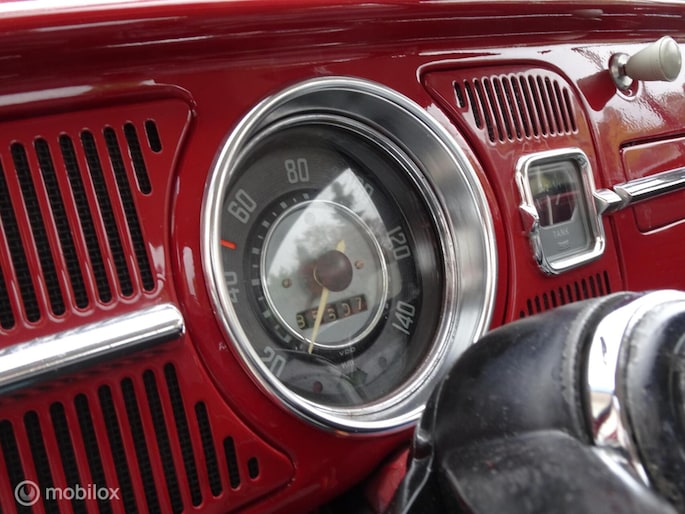Door inruil op een ovaal kever is deze kever weer terug gekomen bij ons. In Noorwegen twee jaar geleden compleet nieuw gespoten en door VW Classics geheel nieuw opgebouwd; nieuwe hemel, stoelen en banken nieuw bekleed en opgevuld, nieuwe hemel, tapijt en deurpanelen. Nieuwe banden, nieuwe remmen, nieuw rubber en chroomwerk. Voor meer dan € 15.000,= geïnvesteerd (rekeningen ter inzage). en... voorzien van een leuk dakrek en als kersen op de taart voorzien van net nieuw gemonteerde supermooie aluminium velgen.