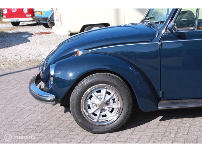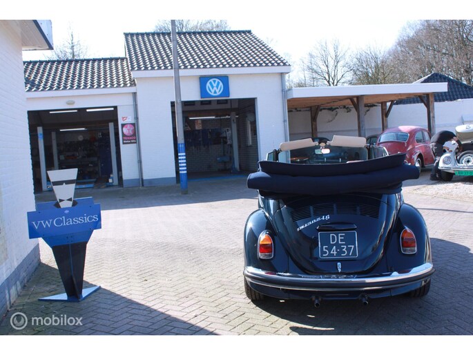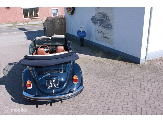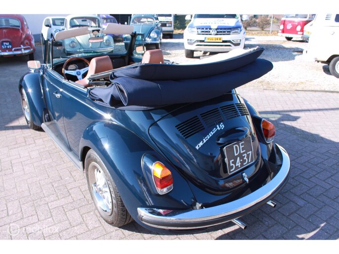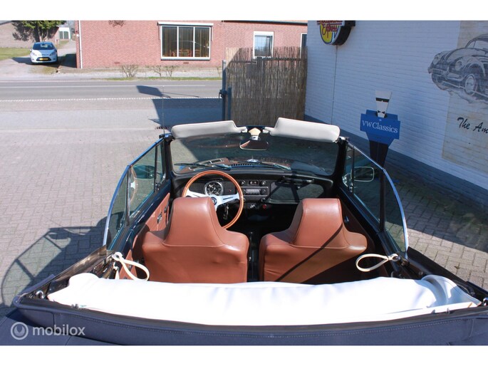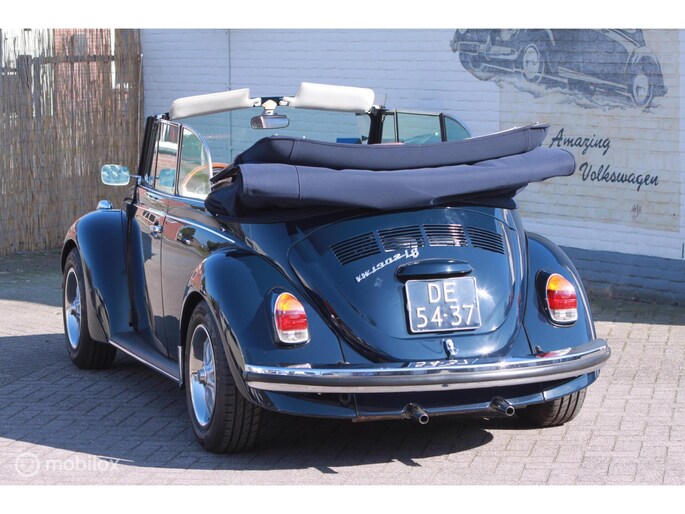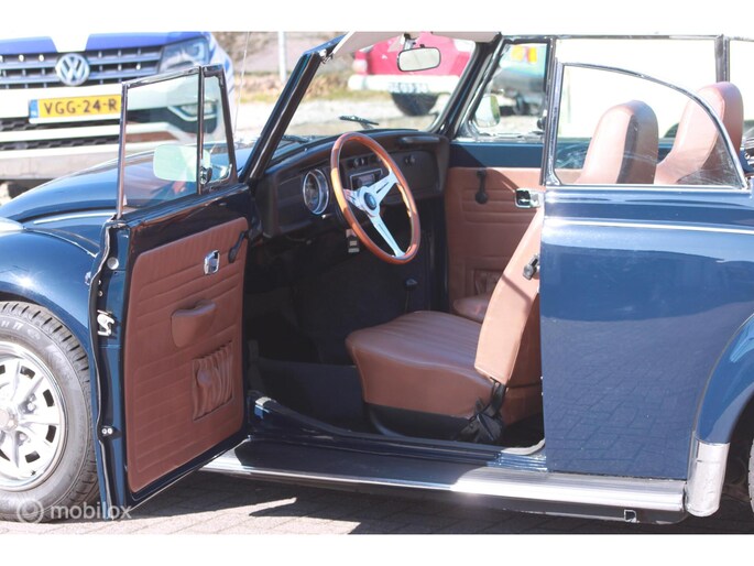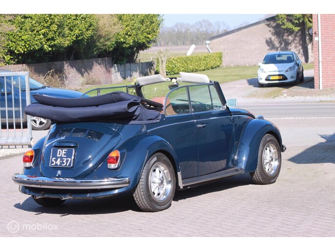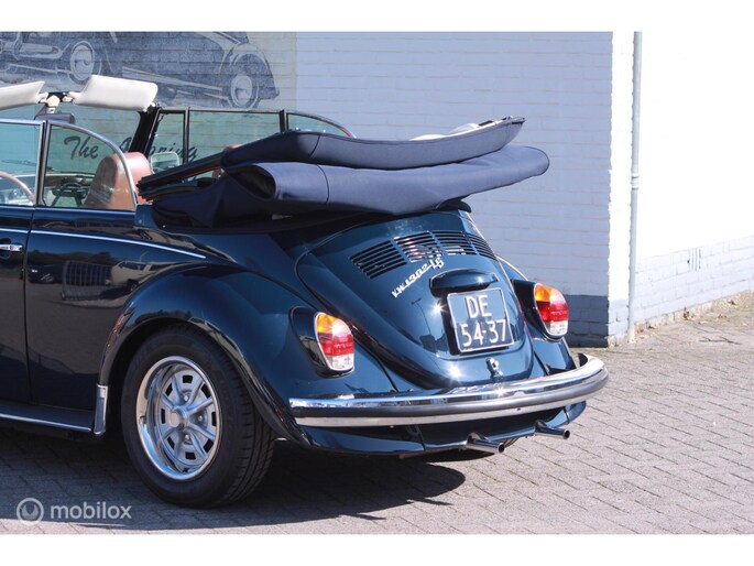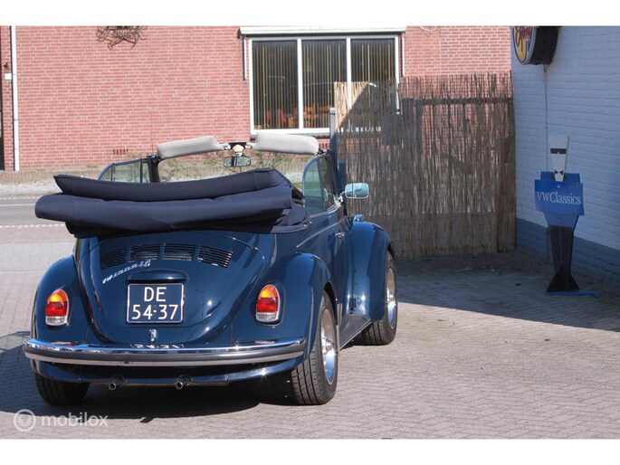 Een van de mooist gerestaureerde cabrio's uit ons "kever-verleden". Body-off gedaan en nergens op bezuinigd. Alles vernieuwd. Professioneel voorzien van een prachtige kleur-combi; een unieke blauwe lak met een blauwe kap, groen getint glas en een bruin lederen interieur. Geplaatst op de mooie originele Lemmertz sportvelgen en voorzien van een trekhaak om er lekker met de fietsen achterop erop uit te gaan. Zeer hoge restauratie kwaliteit. AANRADER!!