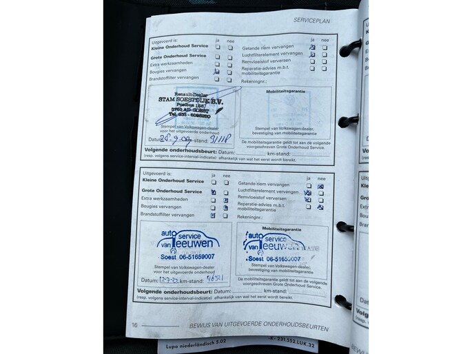 Onderhoudsboekjes: Aanwezig