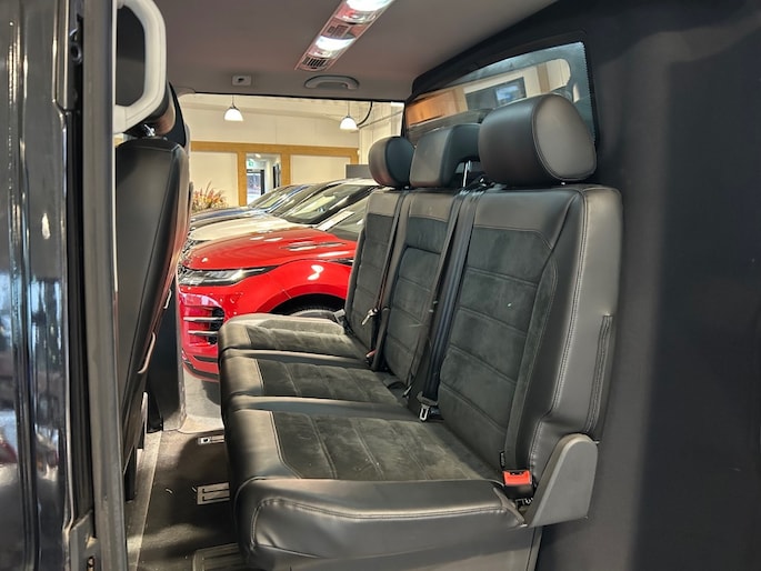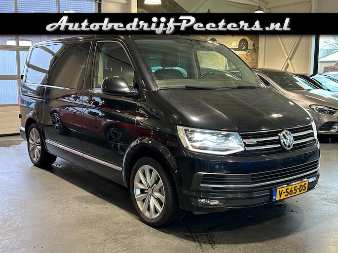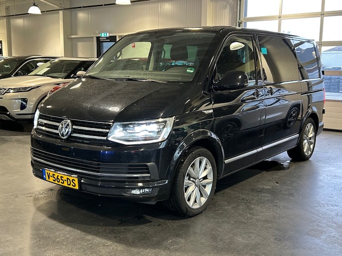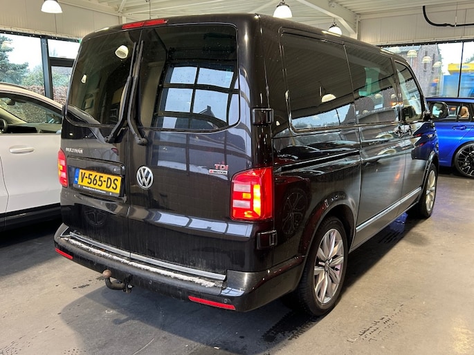 Keurige VW Transporter Multivan 2.0 TDI 204pk 4Motion D.C. Automaat voorzien van lederen alcantara interieur incl. stoelverwarming, LED verlichting, 2x Schuifdeuren elektrisch, achterdeuren, cruise control, parkeersensoren v+a, navigatie full map, glaslook panelen, sportvelgen en trekhaak 2.500kg.