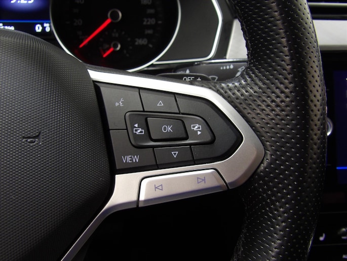 - Stuurwiel (driespaaks), multifunctioneel en met leder bekleed met decorinleg in chroom uitgevoerd met schakelpeddels