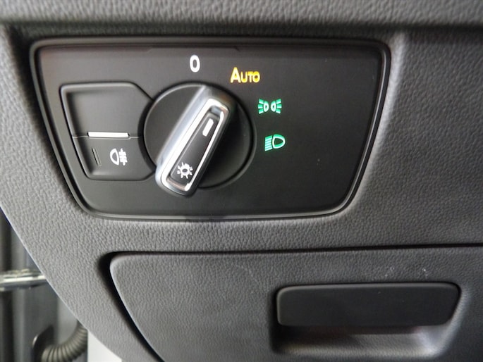 - Ventilatieroosters voor en koplampschakelaar verlicht, met chromen rand