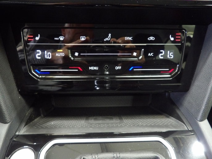 - Middenarmsteun voor met opbergvak, in hoogte en lengte verstelbaar, twee ventilatieroosters achter met zwarte hoogglans omranding