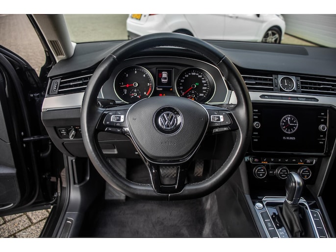 Binnenin tref je een verzorgde cabine met halflederen bekleding en half elektrisch verstelbare, verwarmde stoelen. De ergonomie is typisch Volkswagen: alles voelt solide en doordacht aan. Dankzij Apple CarPlay, ingebouwde navigatie en een parkeercamera ben je verzekerd van comfort en connectiviteit. Isofix-bevestigingen maken de Passat ook ideaal als gezinsauto.