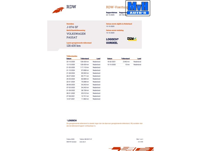 Kilometerstand gecontroleerd