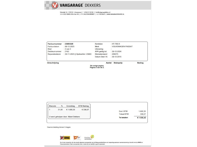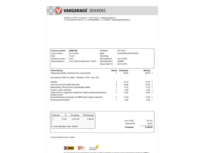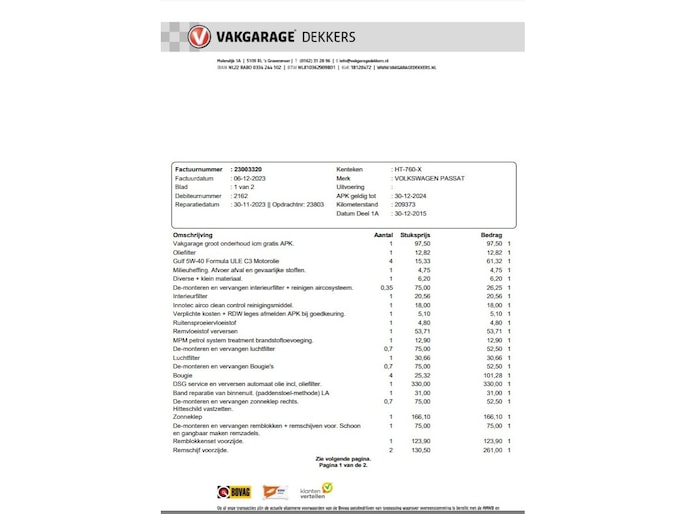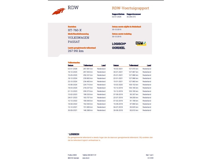 Kilometerstand gecontroleerd