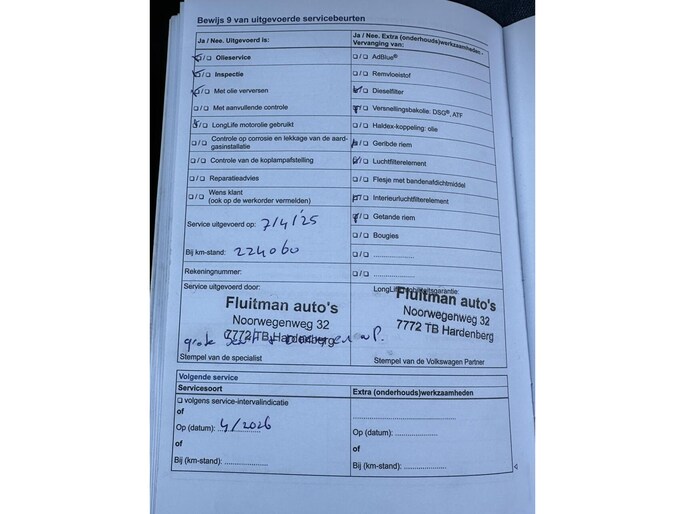 Kilometerstand gecontroleerd