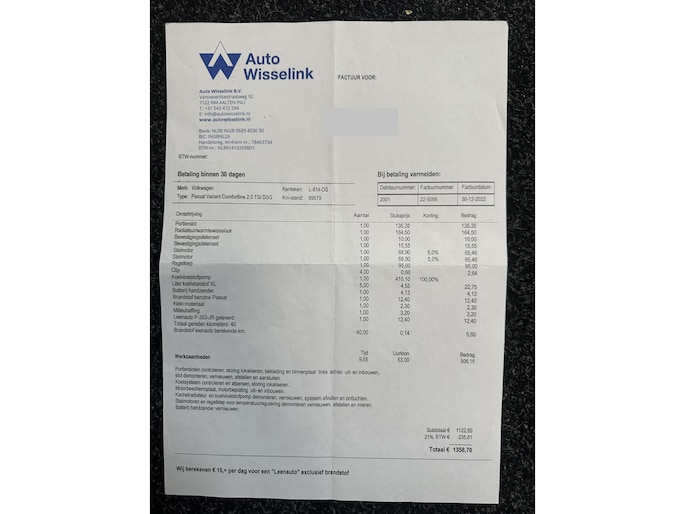 Zonder exportplaten en verzekering: €50 incl. btw