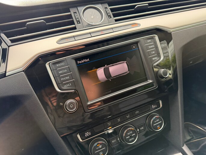 Ingericht op Connected Services, voor een nog veiligere en comfortabelere rit. Een optie die de veiligheid verhoogt, is de bediening vanaf het stuur van het audio-installatiesysteem (met DAB-radio!) en het navigatiesysteem. Als u wilt kunt u beiden zelfs met uw stem bedienen. Dankzij automatische airconditioning is het interieur behaaglijk warm of verfrissend koel. Inparkeren en uitparkeren kost geen enkele moeite dankzij de parkeersensoren. Om de veiligheid onderweg te verhogen, heeft deze Volkswagen zowel een automatisch inschakelbare verlichting als een regensensor aan boord, zodat hij zelf de verlichting en de ruitenwissers kan inschakelen. Natuurlijk behoren sportstuur met schakelpaddels, cruise control, automatisch dimmende buitenspiegels, centrale deurvergrendeling met afstandsbediening, bagage afdekhoes en boordcomputer ook tot de uitrusting van deze complete auto.