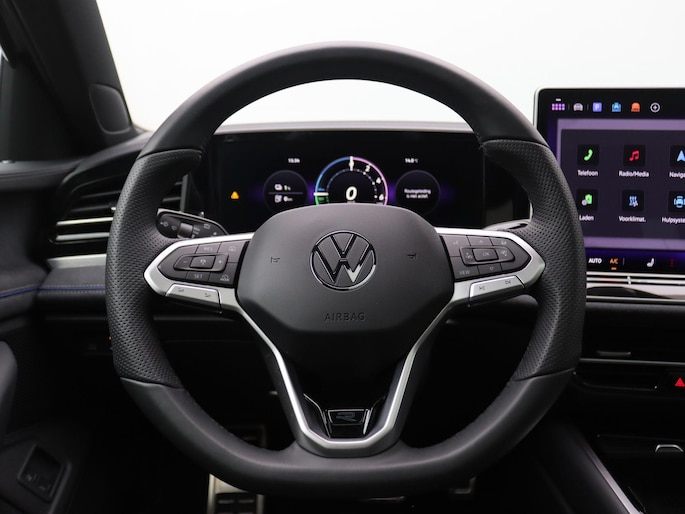 Variant 1.5 eHybrid R-Line Edition 272PK DSG SOH 100%, Pano-Schuifdak, Trekhaak, Black Style, Head-Up Display, Leder, Memorystoel, Keyless, Elektr. Achterklep, 18" LM Velgen