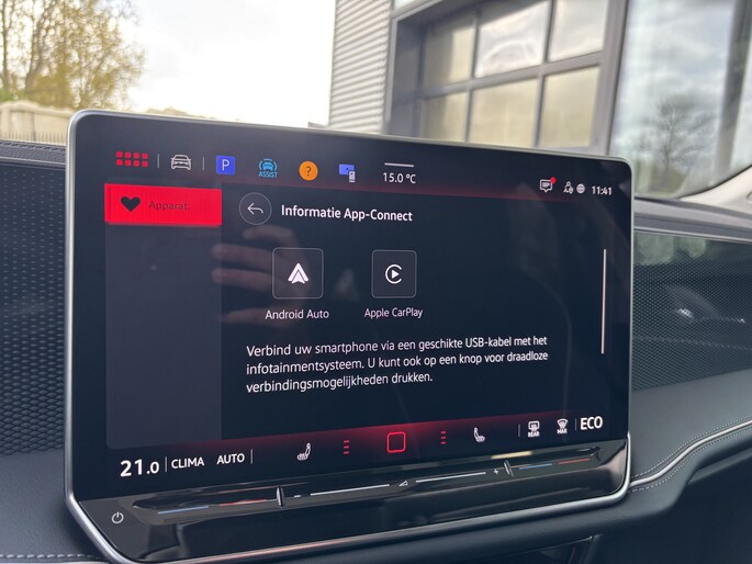 Het digitale dashboard is qua lay-out en zichtbaarheid superslim ingedeeld. Alle functies in één keer in beeld! Geen nekkramp of spiegelwerk meer bij het achteruitrijden: de achteruitrijcamera kijkt en ziet alles! Als je de adaptive cruise control inschakelt, regelt de auto zelf de snelheid en de afstand tot de auto voor je. Met de ingebouwde spraakbediening kun je de belangrijkste voertuigsystemen bedienen met stemcommando's. Als je 'm vraagt 'hoe gaat het?' geeft deze auto zelf het antwoord. Via de app op je smartphone. Je checkt de meters waar je maar wilt, of activeert diverse functies alvast. En deze auto heeft ook navigatiesysteem, kruisend verkeer detectie, electronic climate control, draadloos opladen, DAB ontvangst en regensensor als standaard uitrusting.