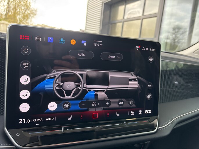 De digitale wereld van mobiliteit verwelkomt jou; op het digitale dashboard wordt alles weergegeven om je rit gemakkelijk en veilig te maken. Achteruitrijden en inparkeren worden een eitje dankzij de achteruitrijcamera. Als je de adaptive cruise control inschakelt, regelt de auto zelf de snelheid en de afstand tot de auto voor je. Slimme spraakbesturing herkent gesproken opdrachten en voert ze uit. Wat is de onderhoudsstatus van deze auto? Je checkt het snel, simpel en overal via je smartphone. Deze Volkswagen is voorzien van navigatiesysteem, kruisend verkeer detectie, electronic climate control, draadloos opladen, DAB ontvangst en regensensor.