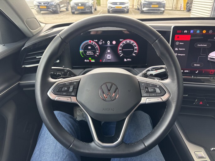 Als bestuurder van deze Volkswagen ben je nooit alleen. Je wordt onderweg bijgestaan door technologische hulpmiddelen die samen met jou de weg in de gaten houden. Als het nodig is, grijpen ze zelfs in, door te remmen of bij te sturen. Jachtvliegers weten het al jaren: belangrijke info projecteer je in je zichtveld zodat je je hoofd niet meer hoeft te draaien. De hier aanwezige head-up display doet precies hetzelfde! De actuele snelheidslimiet, een inhaalverbod en andere verkeersborden. De verkeersborddetectie ondersteunt jou tijdens elke rit. Het Lane-keeping systeem garandeert dat je je niet onverhoeds buiten de lijnen van de rijstrook begeeft. Ook helpen het dodehoekdetectie, forward collision warning system, hill hold functie, vermoeidheidsherkenning, autonoom remsysteem en bandenspanningcontrolesysteem, jouw rit tot een veilige rit te maken.