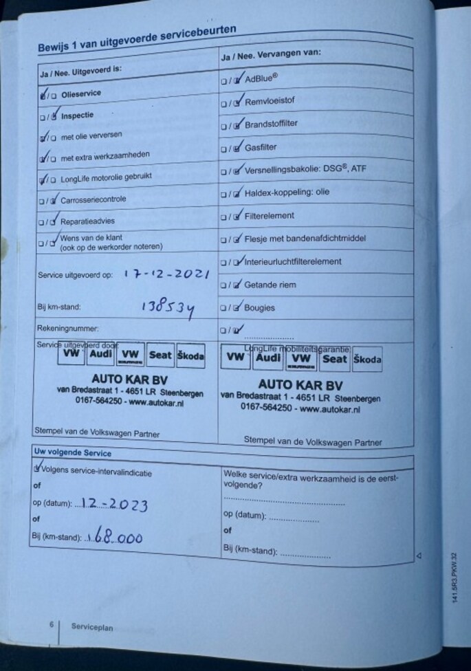 Kilometerstand gecontroleerd