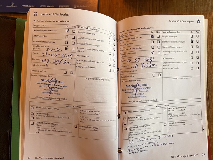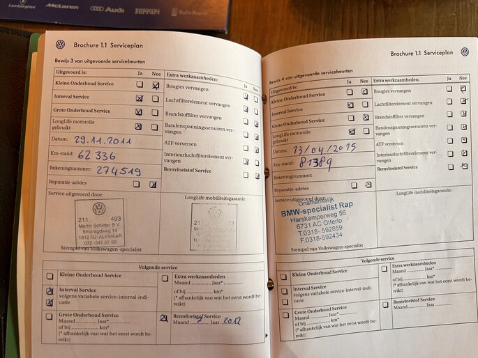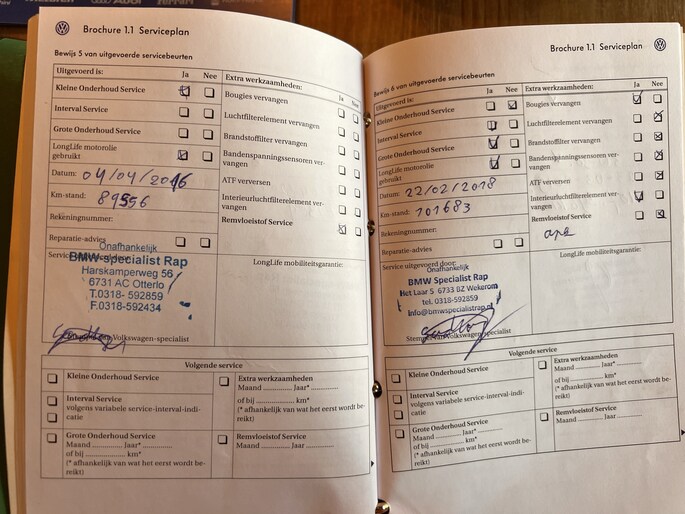 Onderhoudsboekjes: Aanwezig