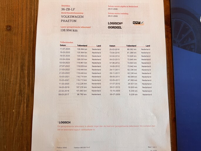 Daarnaast is deze Phaeton uitzonderlijk goed onderhouden en perfect gedocumenteerd. Hij is origineel Nederlands geleverd, voorzien van een sluitende onderhoudshistorie én een kloppend NAP-rapport. Hij heeft slechts drie eigenaren gehad – wat uitzonderlijk is voor dit model en bouwjaar.