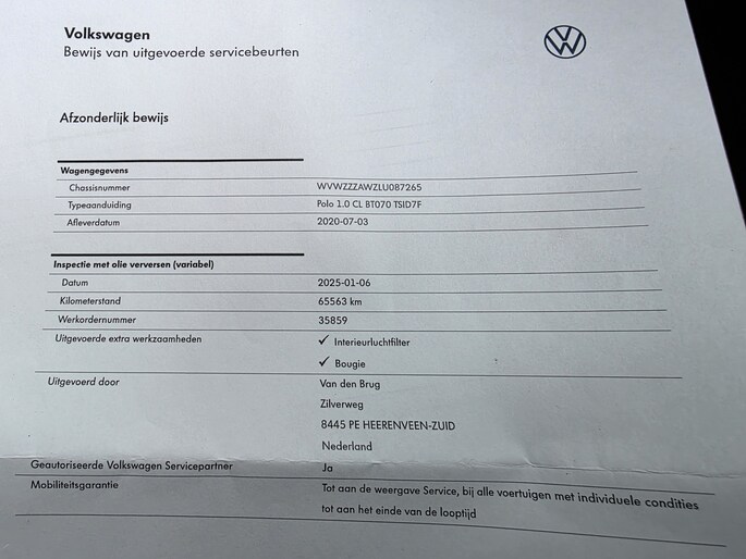 Kilometerstand gecontroleerd