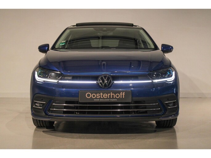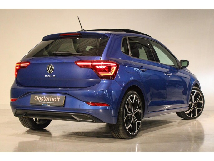 Opvallend complete Volkswagen Polo 1.0 TSI Business in Reef Blue, met panoramadak, sportieve looks en luxe opties.