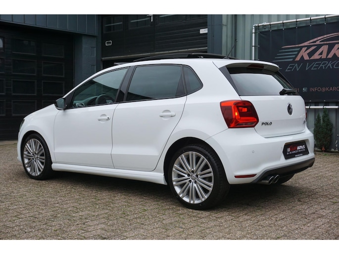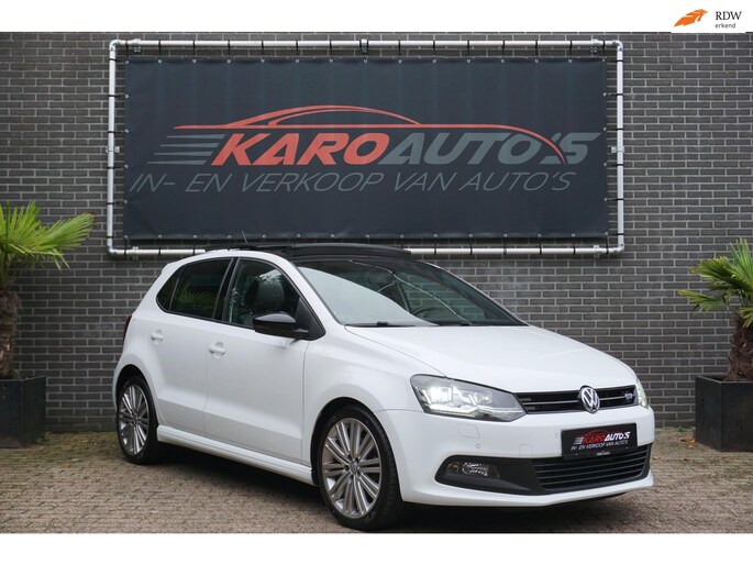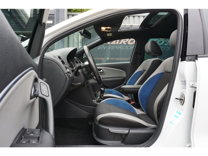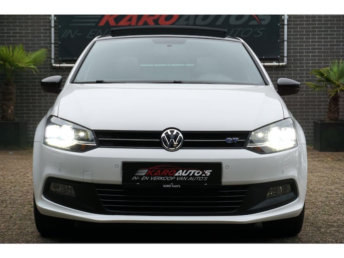Zeer nette en unieke Volkswagen Polo 1.4 TSI 150PK Blue GT 5-deurs voorzien van allerlei opties zoals; Sport exterieur, Sport interieur, sportonderstel, panoramadak, LED koplampen, Apple/Android carplay, koplampsproeiers, LED dagrijverlichting, half lederen/alcantara sportbekleding, stoelverwarming, climate control, multimediasysteem met radio/usb/bluetooth, Multifunctionele lederen afgevlakte sportstuurwiel, elektrische ramen voor en achter, lederen armsteun, elektrisch bedienbare en verwarmbare spiegels, zwarte hemel, parkeersensoren voor en achter, 17 inch lichtmetalen Blue GT velgen met goede zomerbanden, centrale deurvergrendeling op afstand, stuurbekrachtiging, 2 sleutels en nog veel meer.
