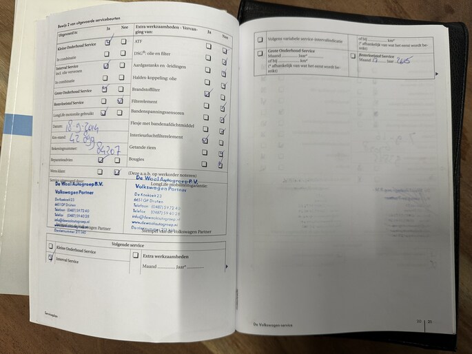 Onderhoudsboekjes: Aanwezig