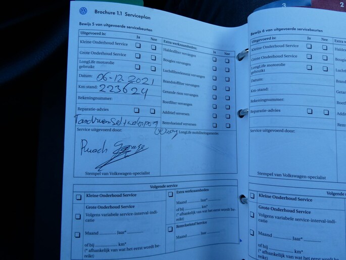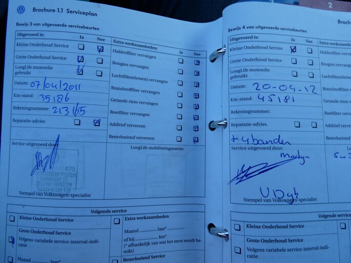 Onderhoudsboekjes: Aanwezig