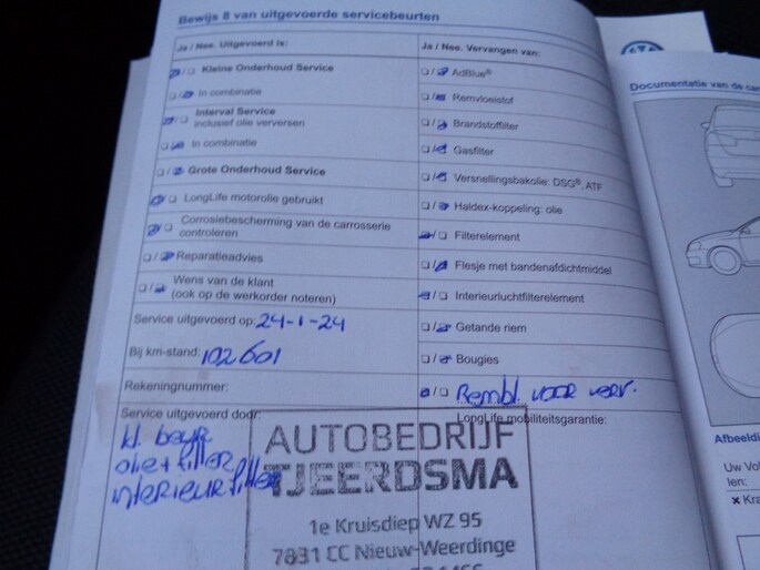 Onderhoudsboekjes: Aanwezig