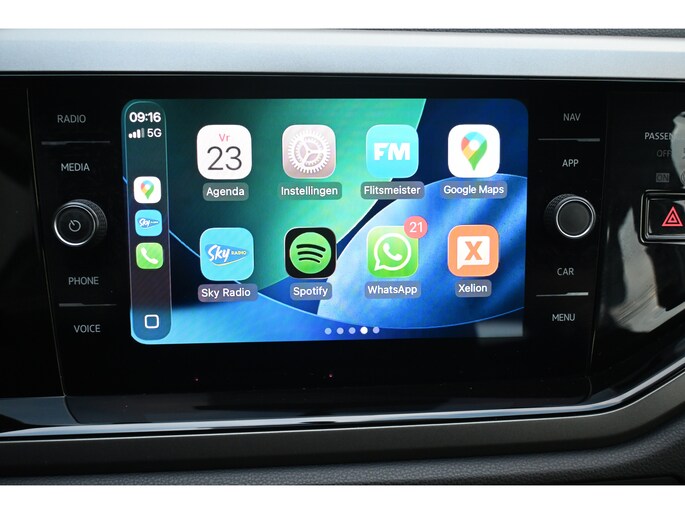 Gemakkelijk en veilig is de bediening het audio-installatiesysteem en het full map navigatiesysteem met knoppen op het stuur. De audio-kwaliteit is geweldig, dankzij de DAB-ontvangst. Deze Volkswagen Polo is voorzien van sensoren aan de achterzijde om een achteropkomend verkeer waarschuwing te geven als de afstand tussen u en een achterligger te klein is. Met cruise control rijdt u rustiger en meer ontspannen, en bovendien zuiniger. Vanzelfsprekend is deze auto ook van airconditioning voorzien. U bent in deze Volkswagen ook voorzien van WIFI-hotspot, lederen stuur, isofix-aansluiting, centrale deurvergrendeling met afstandsbediening, boordcomputer en lederen versnellingspook.