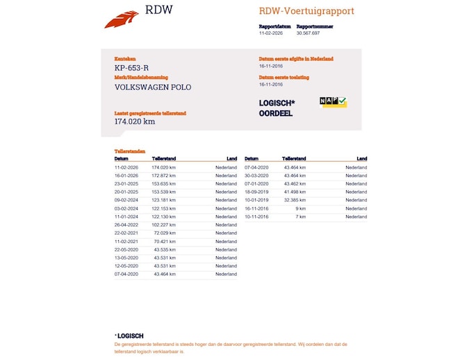 Kilometerstand gecontroleerd