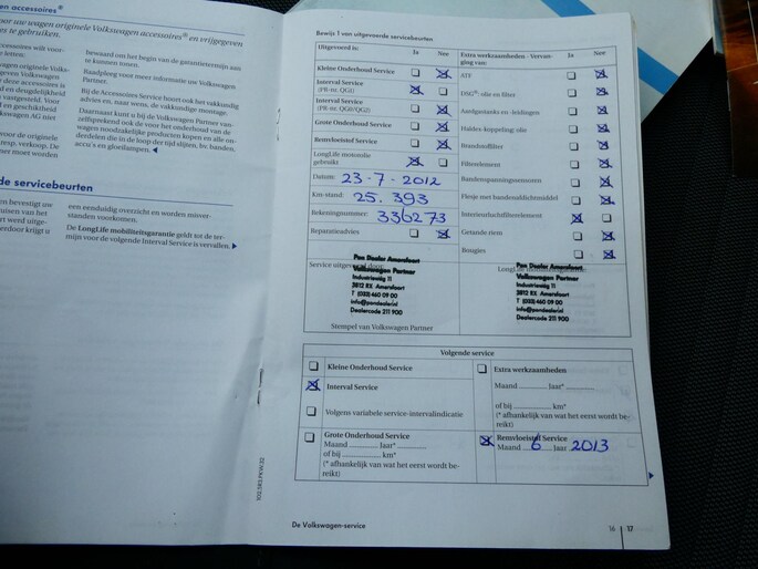 Onderhoudsboekjes: Aanwezig
