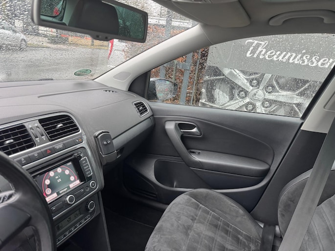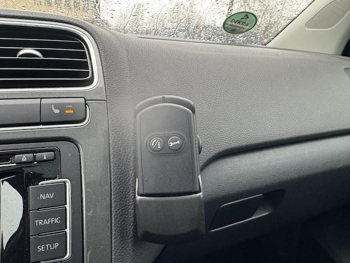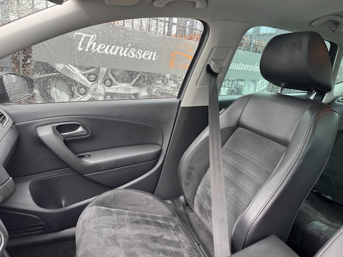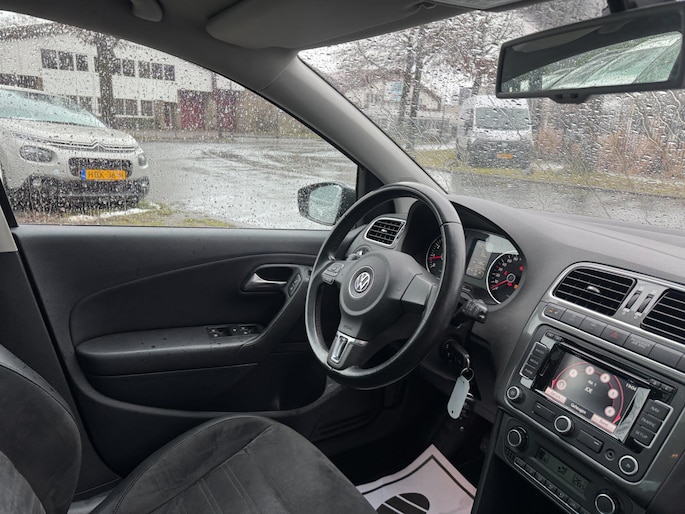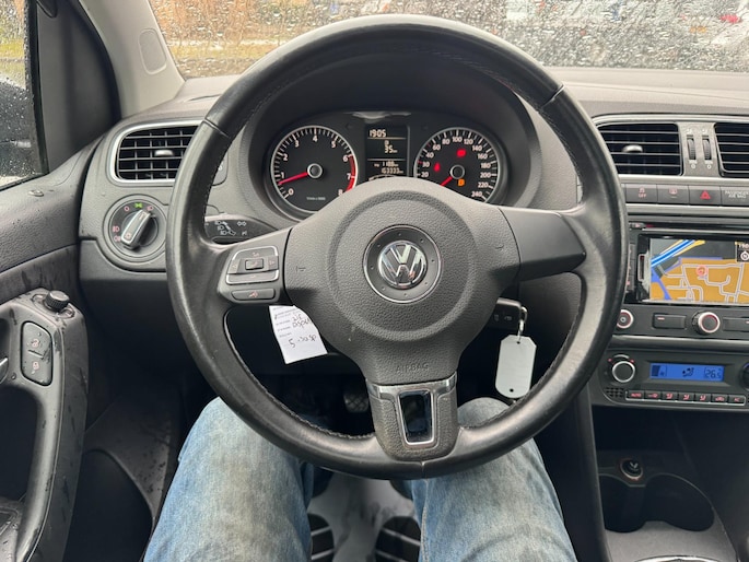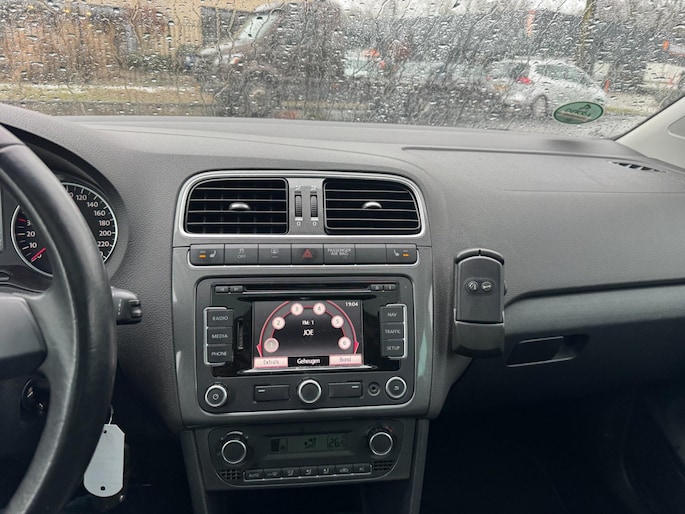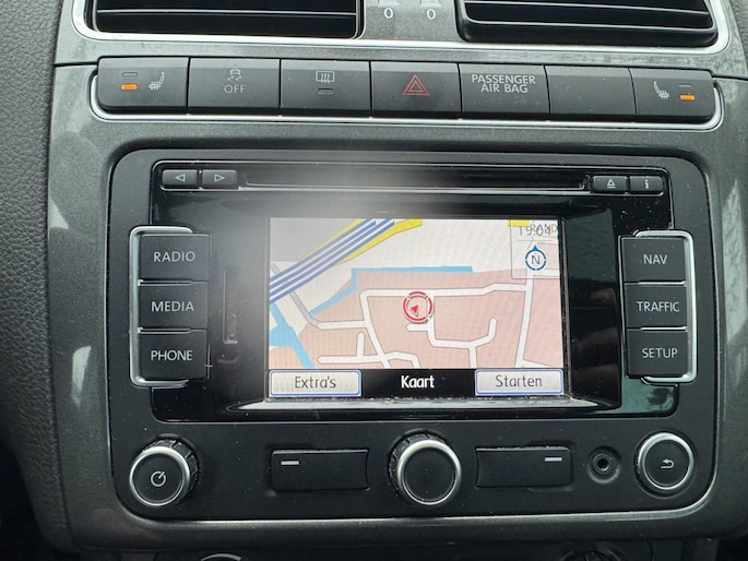 Het navigatiesysteem zorgt ervoor dat u altijd de juiste en snelste route vindt. Dankzij electronic climate control is het interieur behaaglijk warm of verfrissend koel. Het geluidssyteem in deze Volkswagen Polo is regelbaar met behulp van de audiobediening op het stuur. Soms heeft u meer parkeerruimte dan u denkt. Maar soms ook niet. De parkeersensoren vertellen precies hoeveel. De regensensor in de voorruit schakelt de ruitenwissers automatisch in en uit. De Volkswagen is standaard voorzien van: cruise control, automatisch dimmende binnenspiegel, lederen stuur, centrale deurvergrendeling met afstandsbediening, toerenteller en lederen versnellingspook.