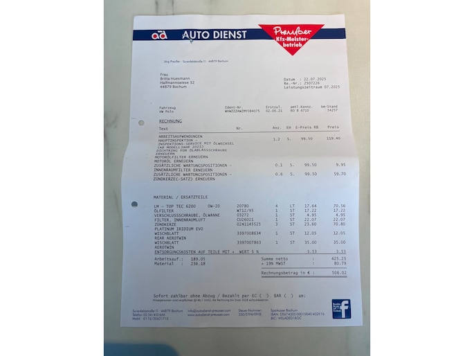 • Onderhoudsbeurt volgens fabrieksvoorschrift inclusief