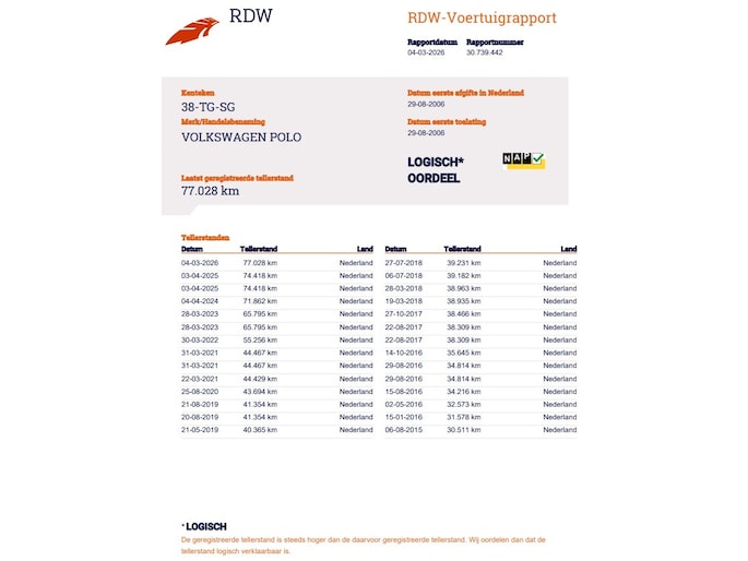 Kilometerstand gecontroleerd