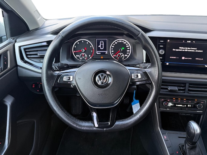 Adaptive cruise control is veilig en comfortabel. De snelheidsregelaar houdt automatisch afstand tot het voertuig dat voor u rijdt. Kies de muziek waarvan u houdt, dankzij de DAB-radio klinkt het altijd geweldig. Intussen bedient u het audiosysteem en het navigatiesysteem met de knoppen op het stuur of met uw stem. Omdat u nu eenmaal niet overal ogen heeft, is deze Volkswagen Polo voorzien van een achteropkomend verkeer waarschuwing die registreert wanneer de afstand tot uw achterligger te krap is. Ook is de auto voorzien van automatische airconditioning. Parkeersensoren zijn een waardevolle toevoeging aan deze auto. De sensoren waarschuwen tijdens het parkeren en voorkomen schade aan de auto. En dan is deze auto ook nog eens voorzien van sportstuur met schakelpaddels, boordcomputer en lederen versnellingspook.