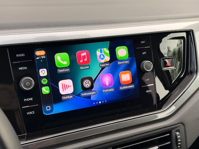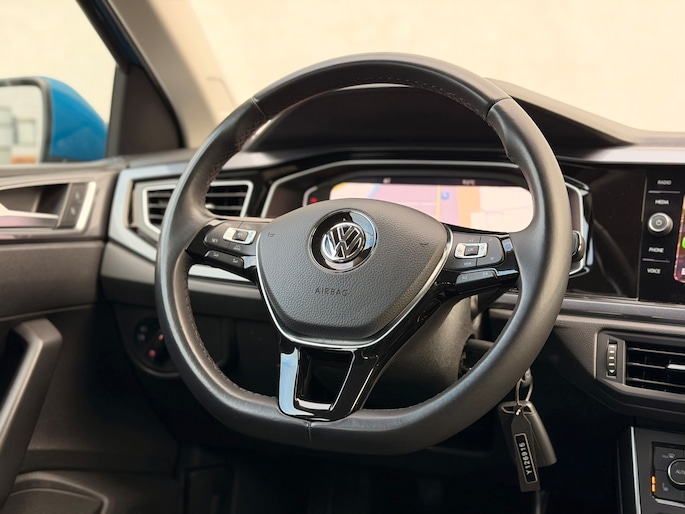 Autohuis Ter Laare biedt deze Volkswagen Polo 1.0 TSI aan in de weinig voorkomende kleur Dark Petrol! Deze auto is voorzien van opties waaronder een multimediasysteem (navigatie, Apple CarPlay, Android Auto, Bluetooth bellen & muziek streamen etc.), climate control, adaptive cruise control, interieur met lederen bies en stoelverwarming, parkeercamera, parkeersensoren, LED koplampen, achterlichten & DRL, draadloze telefoonlader, multifunctioneel lederen stuurwiel, elektrisch inklapbare zijspiegels met dodehoekherkenning en een automatisch dimmende binnenspiegel.