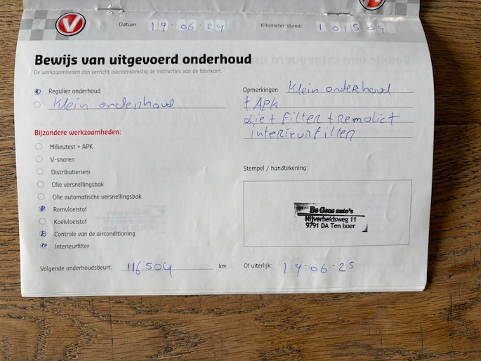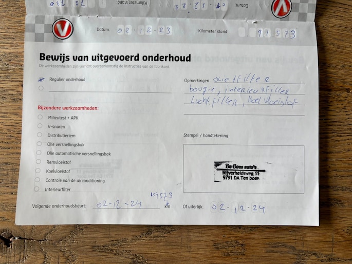 Onderhoudsboekjes: Aanwezig