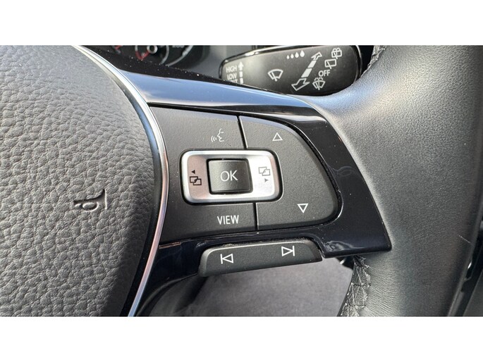 Niets achter deze auto blijft verborgen door de achteruitrijcamera. Een veilig gevoel! Als u de adaptive cruise control inschakelt, regelt de auto zelf de snelheid en de afstand tot de auto voor u. De bediening van het audiosysteem gebeurt met knoppen op het stuur. De audio is overigens voorzien van dab-radio voor een altijd heldere ontvangst. Te weinig afstand tussen u en de achterligger? De sensoren registreren het direct en de achteropkomend verkeer waarschuwing geeft een signaal. Of het buiten nu warm is of koud, dankzij automatische airconditioning is het binnen altijd behaaglijk. Deze Volkswagen is voorzien van lederen stuur, centrale deurvergrendeling met afstandsbediening, boordcomputer en lederen versnellingspook.