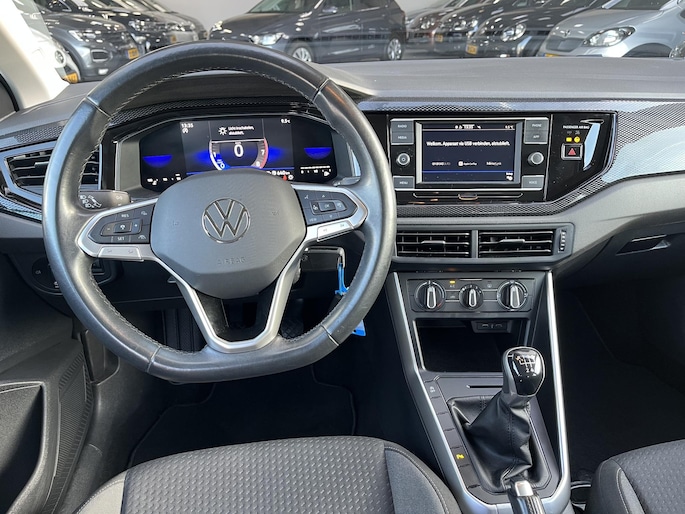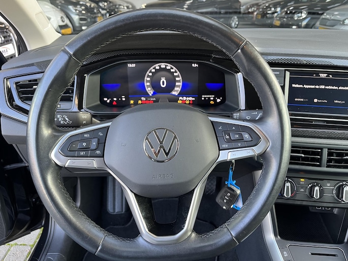 Het digitale dashboard is niet alleen enorm fraai en handig, maar draagt actief bij aan een veilige en slimme rit. Adaptive cruise control is een comfortabele en veilige optie. Het systeem reguleert de snelheid en houdt automatisch afstand tot uw voorligger. Rijden-stilstaan, rijden-stilstaan. Niks is irritanter en vermoeiender dan filerijden. Daar heeft deze Volkswagen Polo een oplossing voor: de file assistent, die met radarmeting permanent het tempo aanpast op de voorligger. Zelfs als die stopt. Dankzij Connected Services houdt u de auto nog gemakkelijker in topconditie. Elke dag. Ogen op de weg, handen aan het stuur. De audiobediening op het stuur zorgt dat u probleemloos schakelt tussen zenders. De uitrusting van deze Volkswagen is met DAB ontvangst, parkeersensoren voor en achter, regensensor, airconditioning, automatisch dimmende binnenspiegel en lederen stuur behoorlijk compleet.