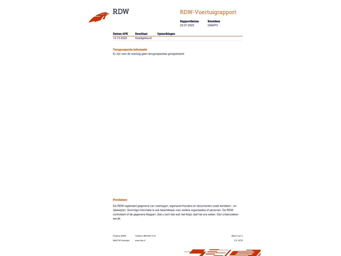 Kilometerstand gecontroleerd