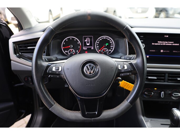 Als u de adaptive cruise control inschakelt, regelt de auto zelf de snelheid en de afstand tot de auto voor u. Deze Volkswagen is voorzien van knoppen op het stuur om het audiosysteem te bedienen. De achteropkomend verkeer waarschuwing is een mooie veiligheidsoptie, die middels sensoren in de gaten houdt wat er onderweg achter u gebeurt. Parkeerplekken worden er niet ruimer op. Maar met de aanwezige parkeersensoren krijgt u deze Volkswagen Polo zonder problemen op z'n plaats. In de zomer zorgt de airconditioning voor verkoeling. In het voorjaar en najaar voorkomt het systeem beslagen ramen. En deze auto heeft ook lederen stuur, centrale deurvergrendeling met afstandsbediening, boordcomputer en lederen versnellingspook als standaard uitrusting.