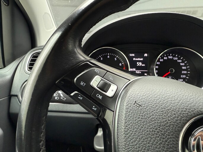 In deze auto kunt u de belangrijkste functies bedienen met uw stem. De sensatie van superieur geluid wordt geleverd door het high performance audiosysteem. De snelste of zuinigste weg? Het navigatiesysteem aan boord wijst de juiste weg! Een plekje vinden in de binnenstad is één, inparkeren is twee. Voor dat laatste heeft deze Volkswagen Polo prima parkeersensoren die u een handje helpen. De cruise control betekent gemak, comfort en zuinig rijden. En deze auto heeft ook airconditioning, lederen stuur, centrale deurvergrendeling met afstandsbediening en boordcomputer als standaard uitrusting.