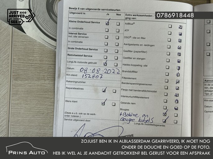 De auto is volledig onderhouden en de onderhoudshistorie is aanwezig.