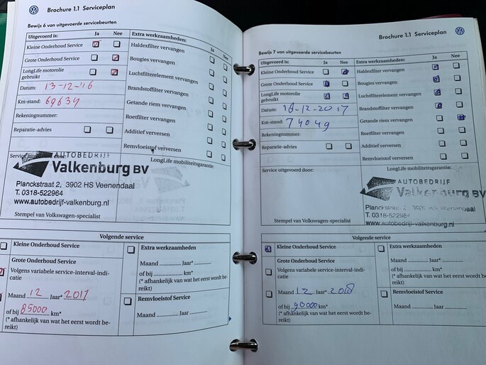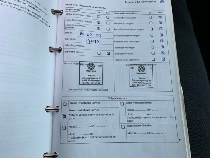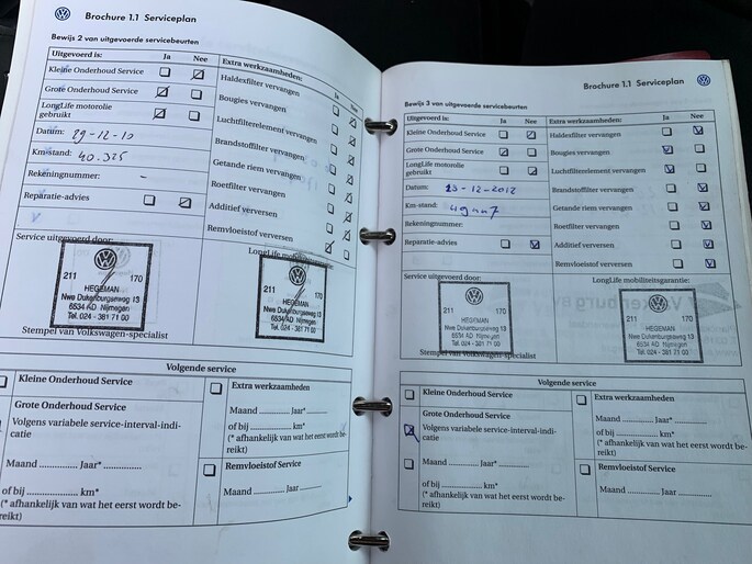 Onderhoudsboekjes: Aanwezig