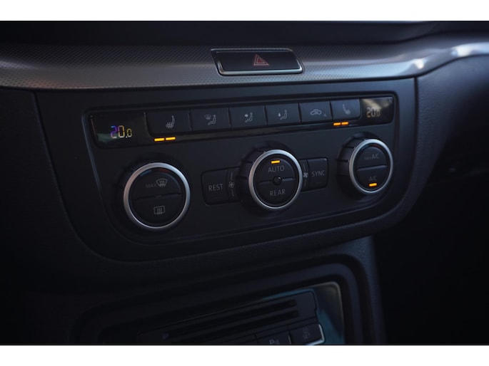 Tijdens de rit bedient u het audio-installatiesysteem en het navigatiesysteem met de knoppen op het stuur. De automatische airconditioning zorgt voor een prettige binnentemperatuur. Achter het stuur van deze Volkswagen bent u niet alleen. De auto kijkt als het ware met u mee tijdens de rit. De regensensor schakelt de ruitenwissers in als het nodig is en de automatisch inschakelbare verlichting doet de lichten voor u aan. Op de plaats van bestemming zijn het de parkeersensoren voor en achter die u assisteren bij het inparkeren. Lekker koersen op een constante snelheid: daarvoor zorgt de cruise control. De uitrusting van deze auto is met lederen versnellingspook, verstelbaar stuur, automatisch dimmende binnenspiegel, boordcomputer, centrale deurvergrendeling met afstandsbediening, buitentemperatuurmeter en bagage afdekhoes behoorlijk compleet.