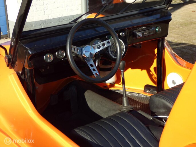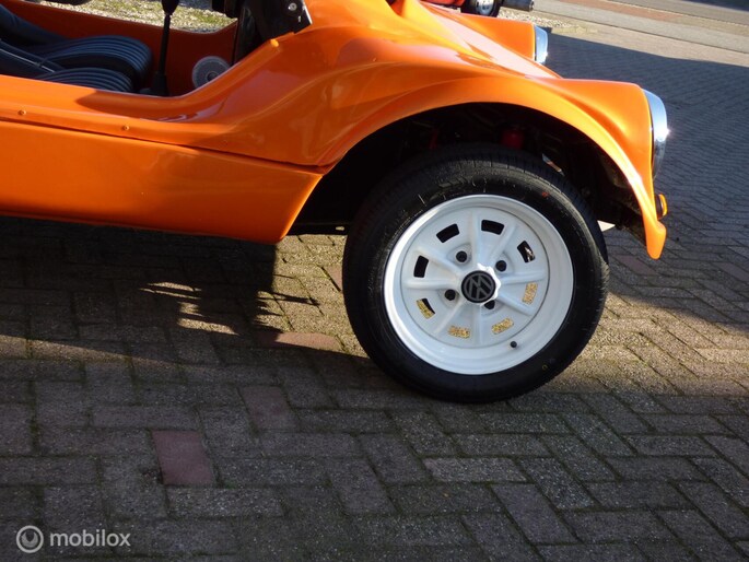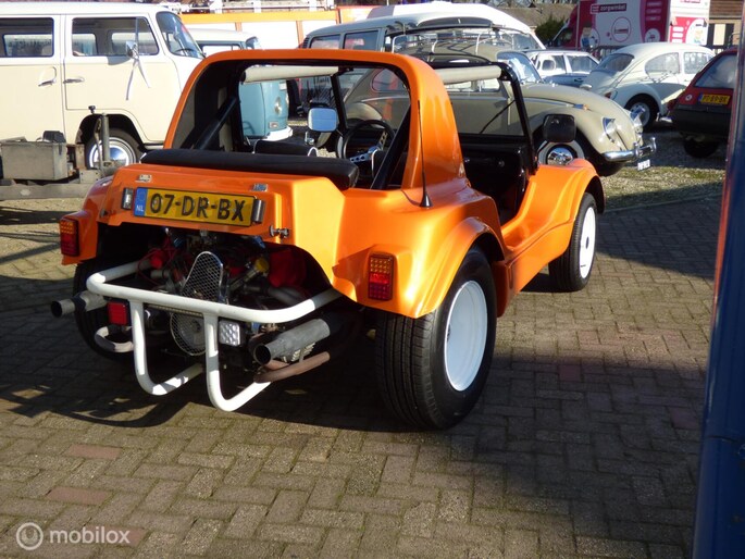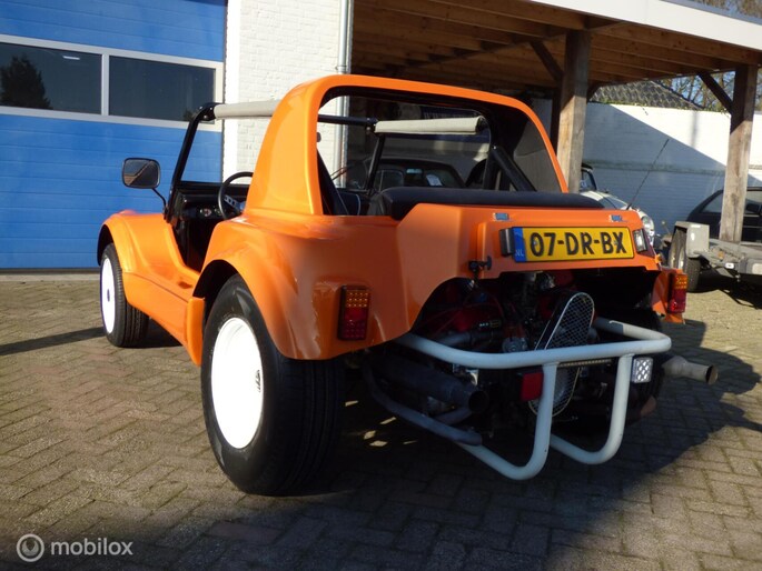 Het fijne aan dit exemplaar is dat deze Dune Buggy geschikt is voor 4 personen, met gordel..., zonder dat de buggy te lang is. Dat komt de wendbaarheid en de terrein eigenschappen ten goede. De 1600 cc is erg bij de les, en de sportuitlaat geeft een prachtig geluid zonder schreeuwerig te zijn,. De bouw van deze sterke buggy is dusdanig dat vrijwel iedereen gemakkelijk in- en uitstapt.