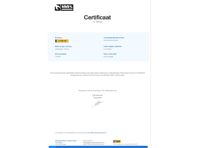 Kilometerstand gecontroleerd
