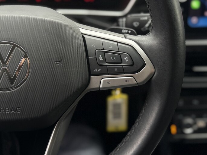 Kom maar, kom maar, kom maar... ho! Prettig hoor, zo'n achteruitrijcamera. Adaptive cruise control is een comfortabele en veilige optie. Het systeem reguleert de snelheid en houdt automatisch afstand tot uw voorligger. U weet altijd hoe de auto eraan toe is dankzij Connected Services. Ook handig voor de garage en de wegenwacht. Even de app uitlezen en klaar! U bedient het navigatiesysteem en het audio-installatiesysteem met DAB-radio via knoppen op het stuur, of zelfs met uw stem. Zo kunt u steeds uw aandacht gericht houden op de weg. Ook is de auto voorzien van automatische airconditioning. Met regensensor, automatisch dimmende spiegels, lederen stuur, boordcomputer en lederen versnellingspook is deze Volkswagen helemaal compleet.