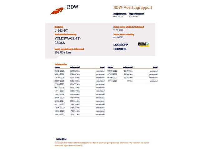 Kilometerstand gecontroleerd