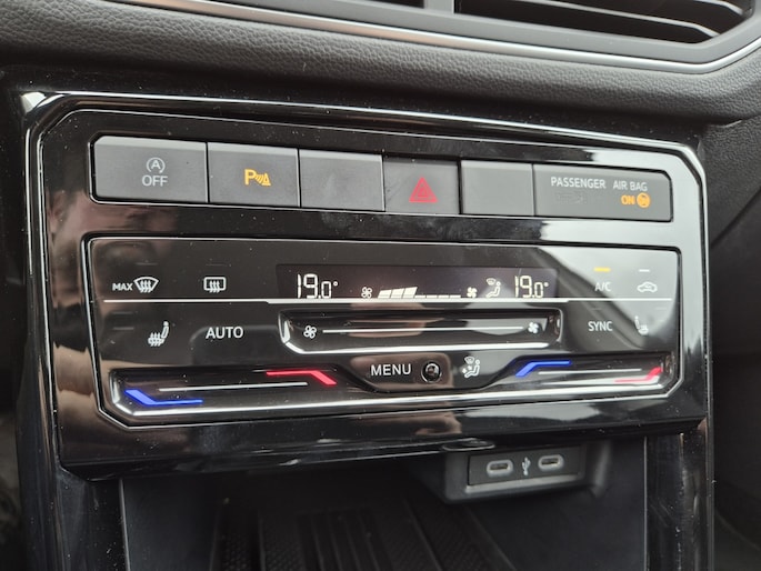 Deze T-Cross is voorzien van geavanceerde rijassistentie voor extra veiligheid op de weg. Het Rijassistent-systeem Detectie van afleiding en vermoeidheid zorgt ervoor dat u altijd alert blijft tijdens het rijden. Daarnaast zijn de buitenspiegels elektrisch verstelbaar, verwarmbaar en inklapbaar, met een handige stoeprandfunctie aan de rechterkant. Zo kunt u eenvoudig manoeuvreren in smalle straten zonder uw spiegels te beschadigen.